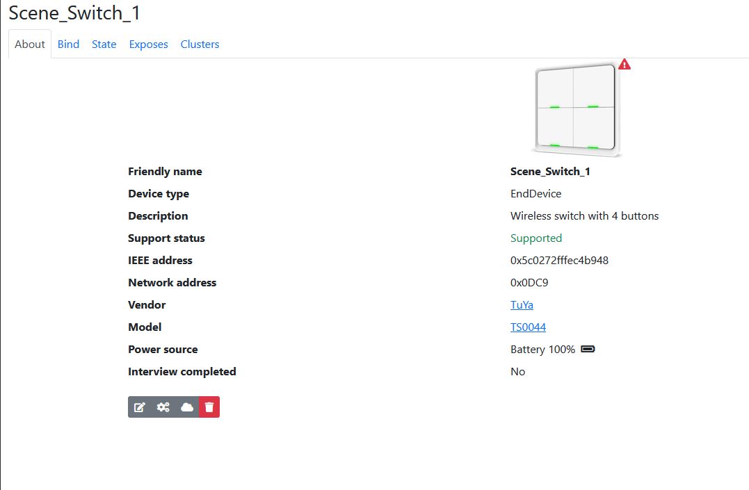 Urządzenie: scene switch: https://www.zigbee2mqtt.io/devices/TS0044.html